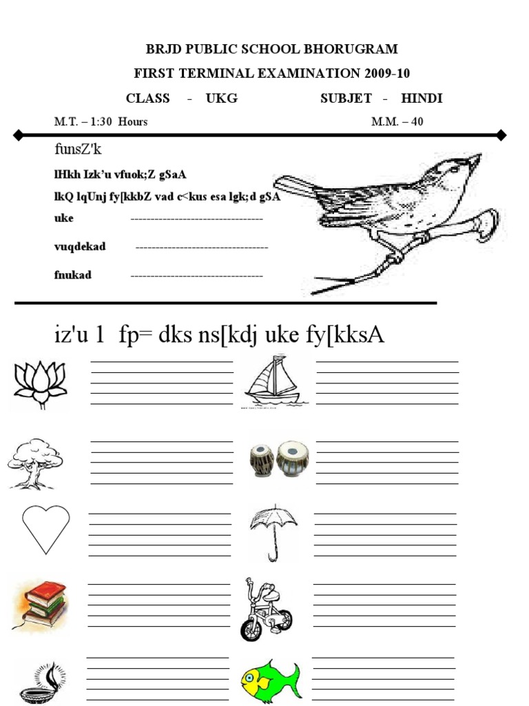 Ukg Question Paper Hindi